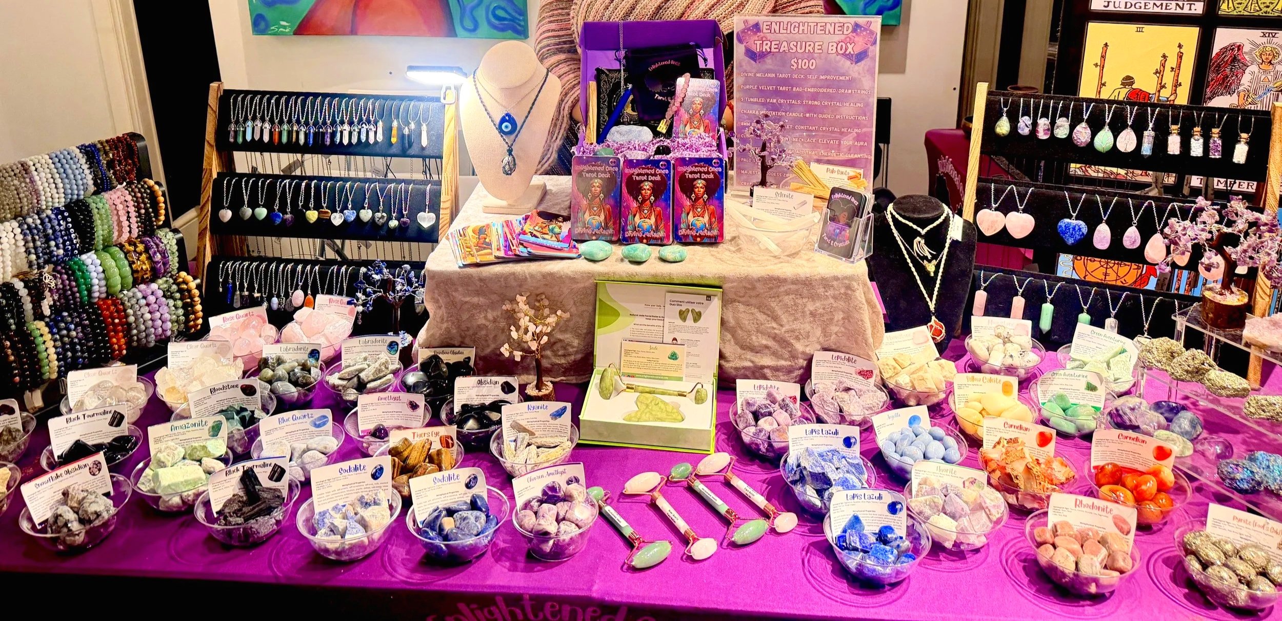 Drafted by Enlightened Ones Tarot’s owner and founder a Black American Tarot reader with over 25 years of experience, this 78-card deck is a tribute to the magic of Melanin skin tones and traditional Tarot. Each vibrant card is a masterpiece, celebrating spirituality and inviting you on a powerful, transformative journey. Offering profound guidance and insight, it's an essential tool for connecting with your inner divinity and navigating your life's path. Embrace the powerful Melanin Goddess beauty with every draw!